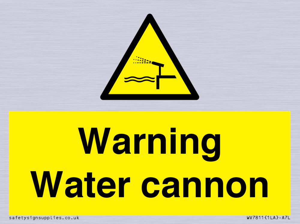Sign Text: Warning Water cannon