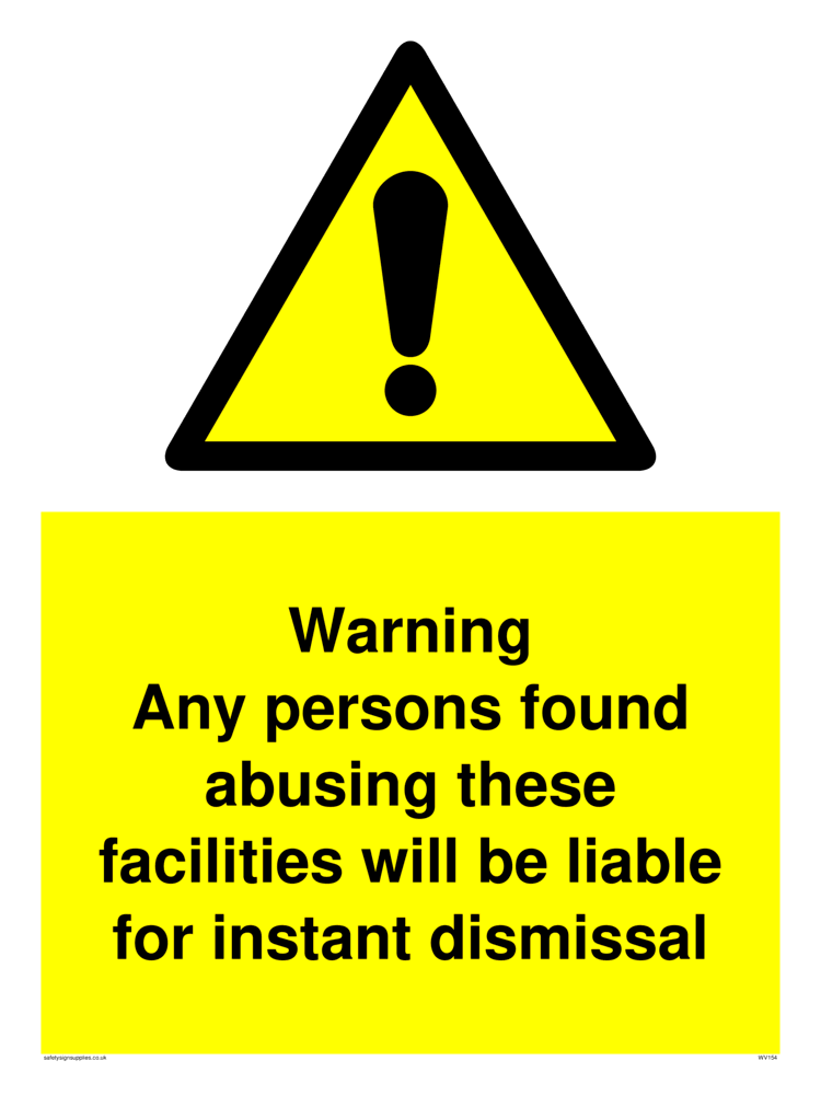 This sign contains a warning Exclamation Symbol - black exclamation mark on yellow triangle background. Comes with a self adhesive backing.