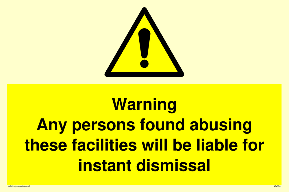 This sign contains a warning Exclamation Symbol - black exclamation mark on yellow triangle background.