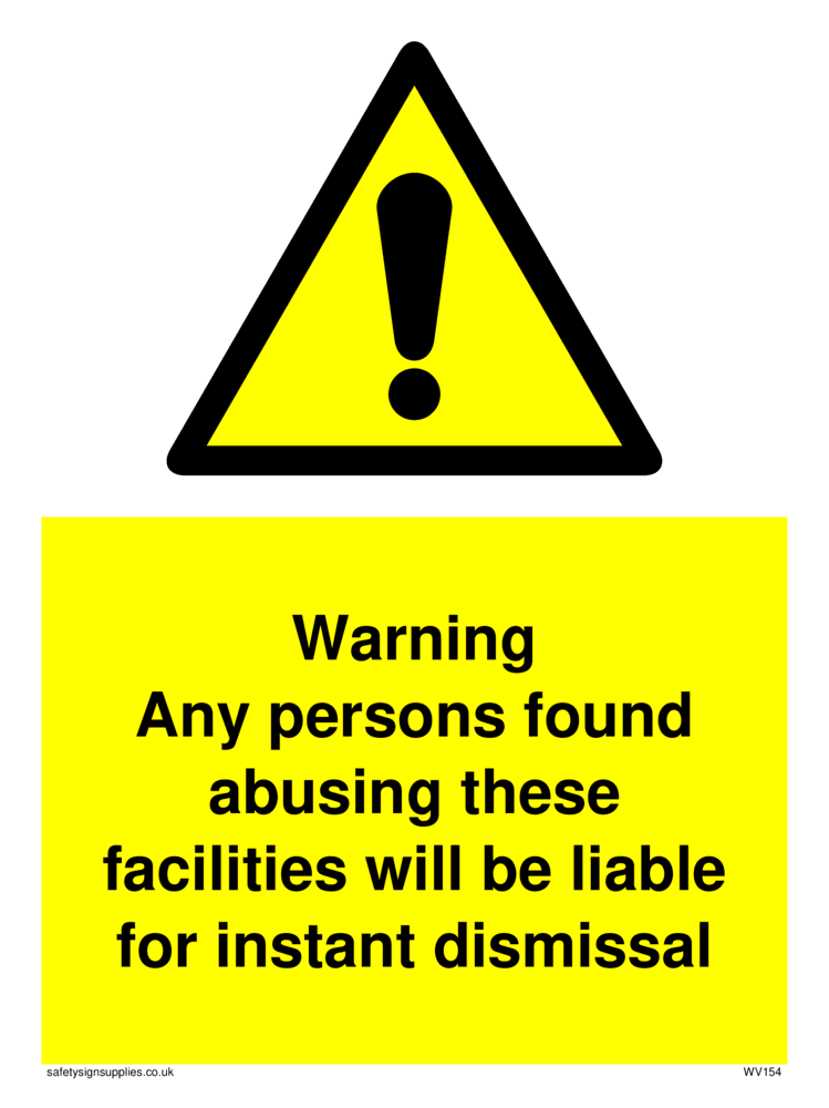 This sign contains a warning Exclamation Symbol - black exclamation mark on yellow triangle background.