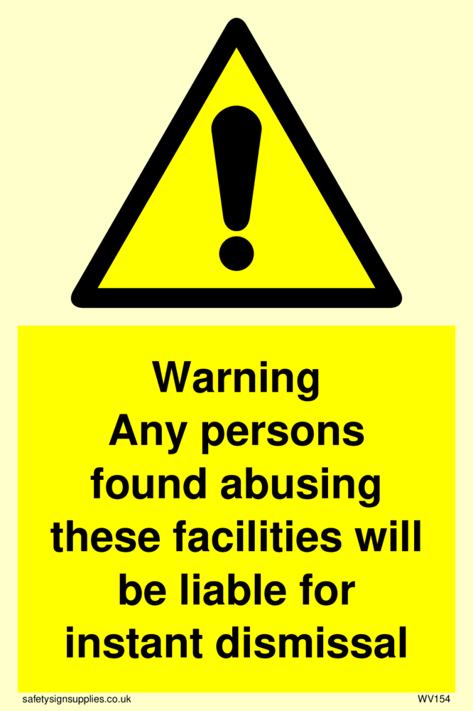 This sign contains a warning Exclamation Symbol - black exclamation mark on yellow triangle background.