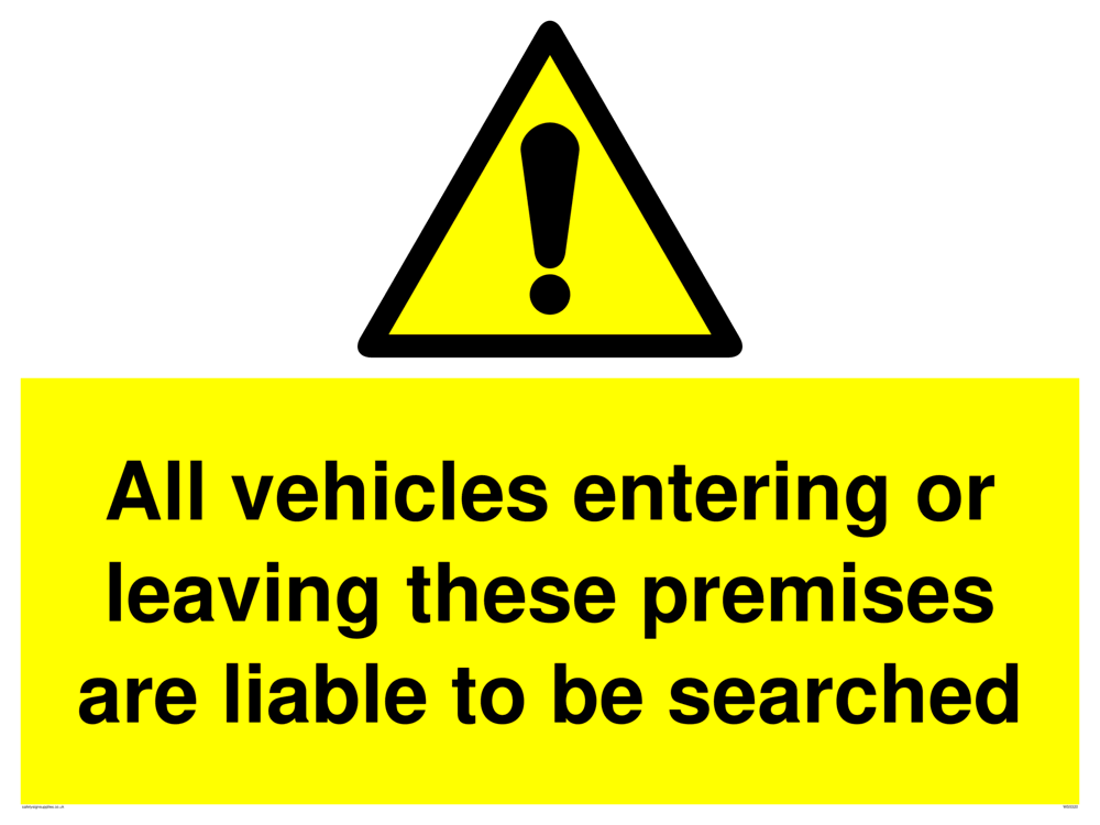 Vehicles entering/leaving liable to be searched Sign