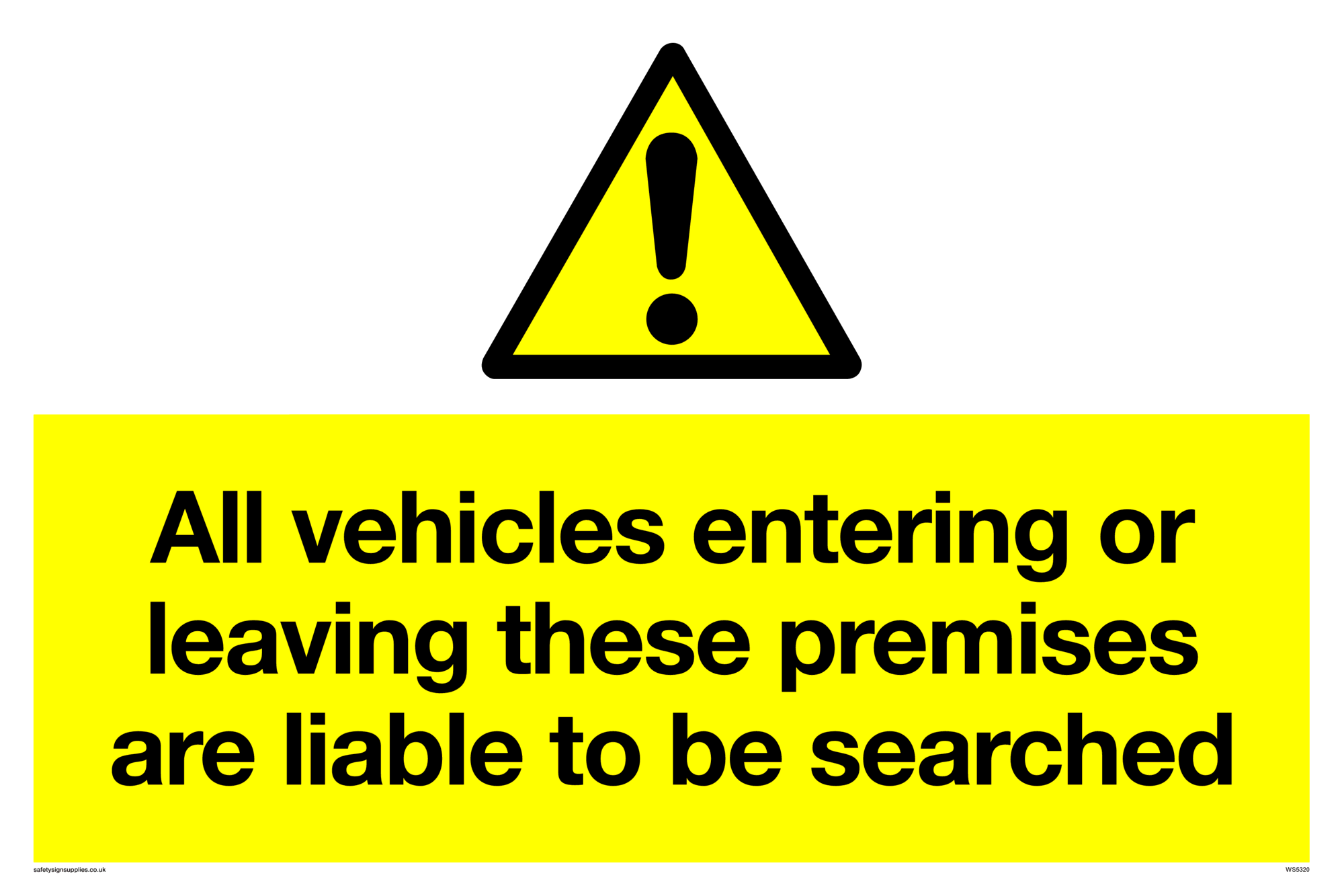 Sign Text: All vehicles entering or leaving these premises are liable to be searched