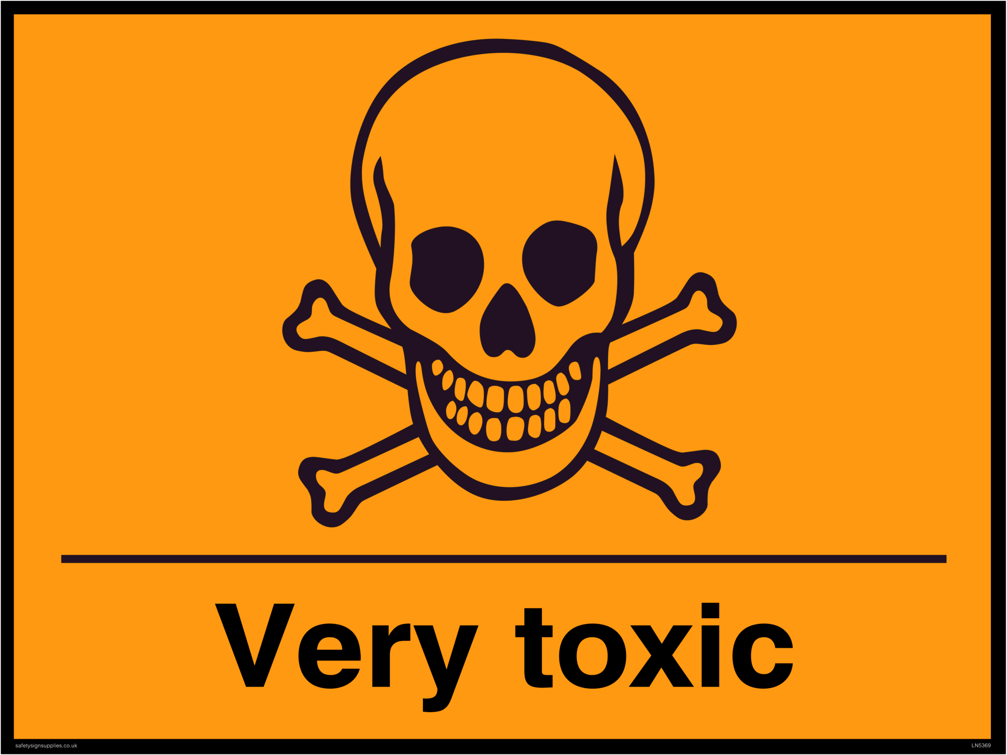 This sign contains an international standard toxic / poison symbol. Skull and cross bones in black.