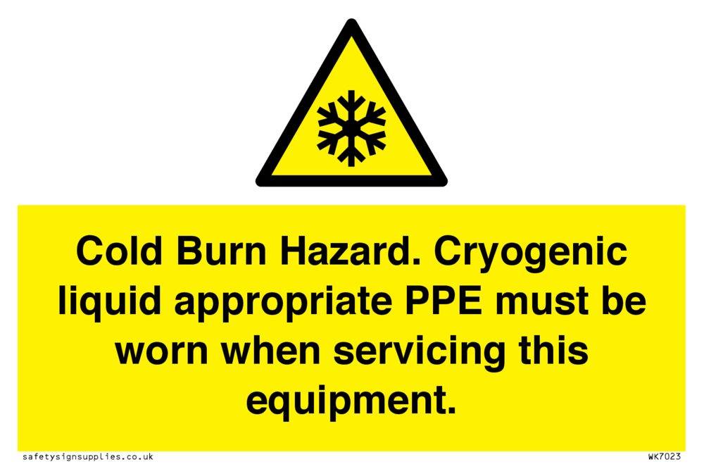 Sign Text: Cold Burn Hazard. Cryogenic liquid appropriate PPE must be worn when servicing this equipment.
