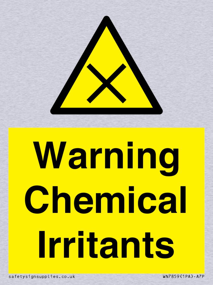 This sign contains an international standard irritant / harmful warning symbol. Diagonal black cross in yellow warning triangle with black border. Suitable for fixing with screws. Suitable for hanging with a premium hanging kit.