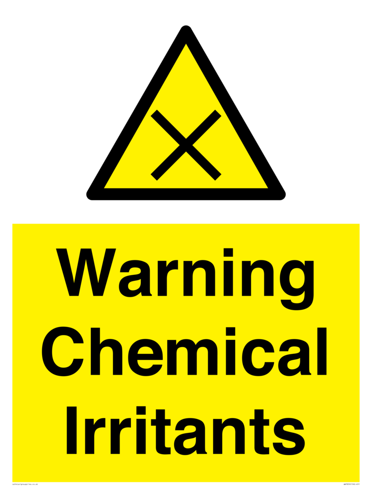 This sign contains an international standard irritant / harmful warning symbol. Diagonal black cross in yellow warning triangle with black border. Comes with a self adhesive backing. 800mm or approximately 32" high.