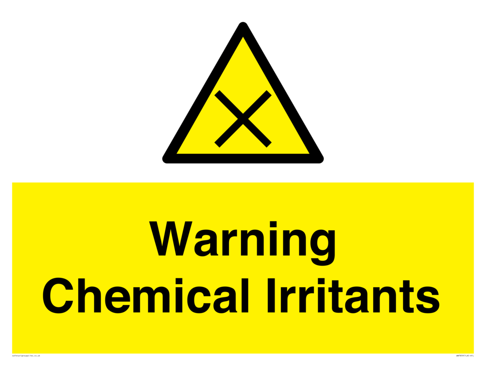 This sign contains an international standard irritant / harmful warning symbol. Diagonal black cross in yellow warning triangle with black border.
