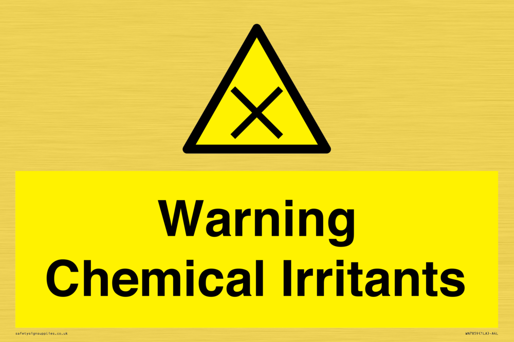 This sign contains an international standard irritant / harmful warning symbol. Diagonal black cross in yellow warning triangle with black border. Comes with a self adhesive backing. 200mm or approximately 8" high.