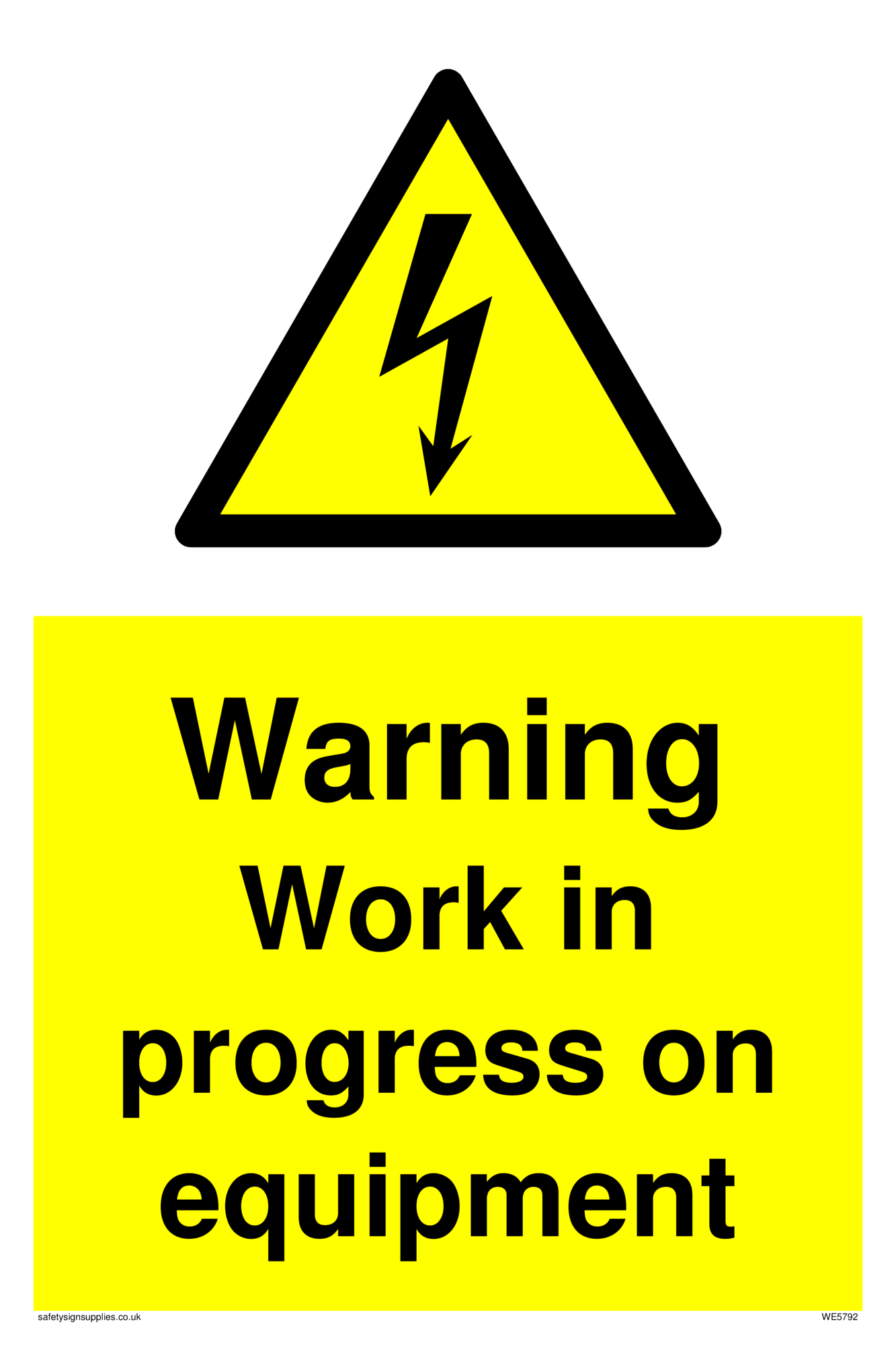 Sign Text: Warning Work in progress on equipment