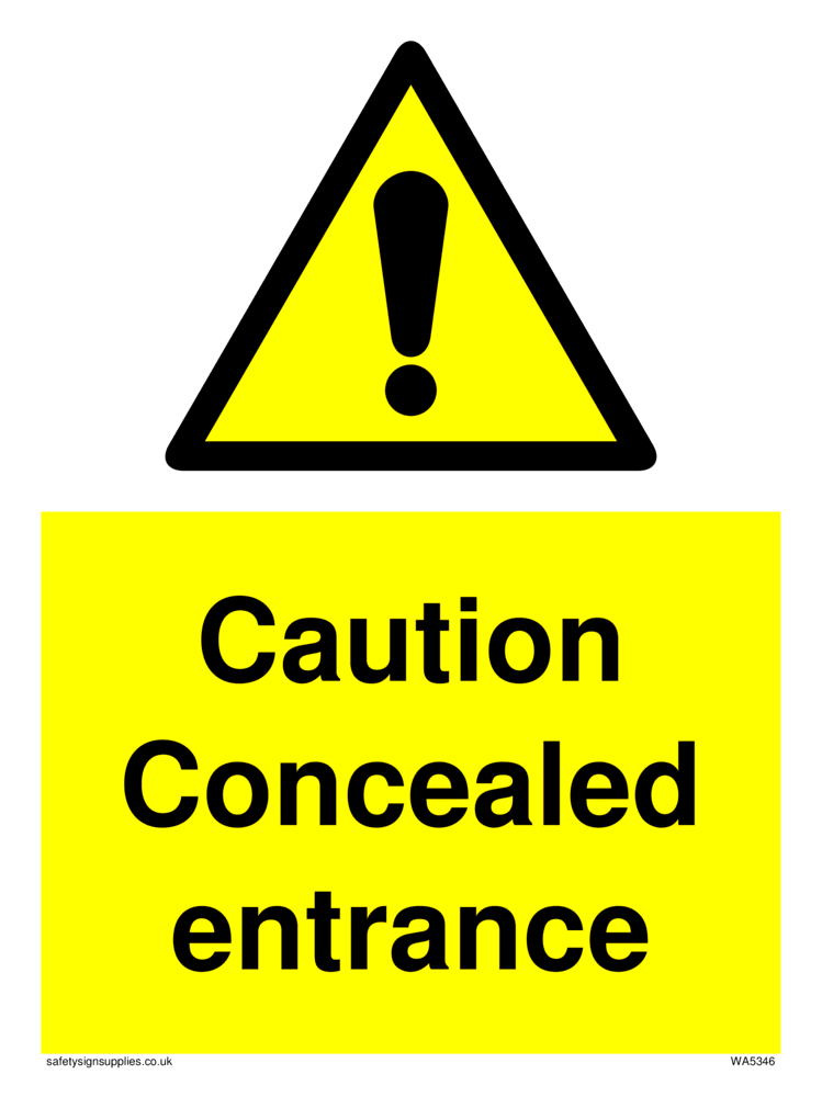Sign Text: Caution Concealed entrance