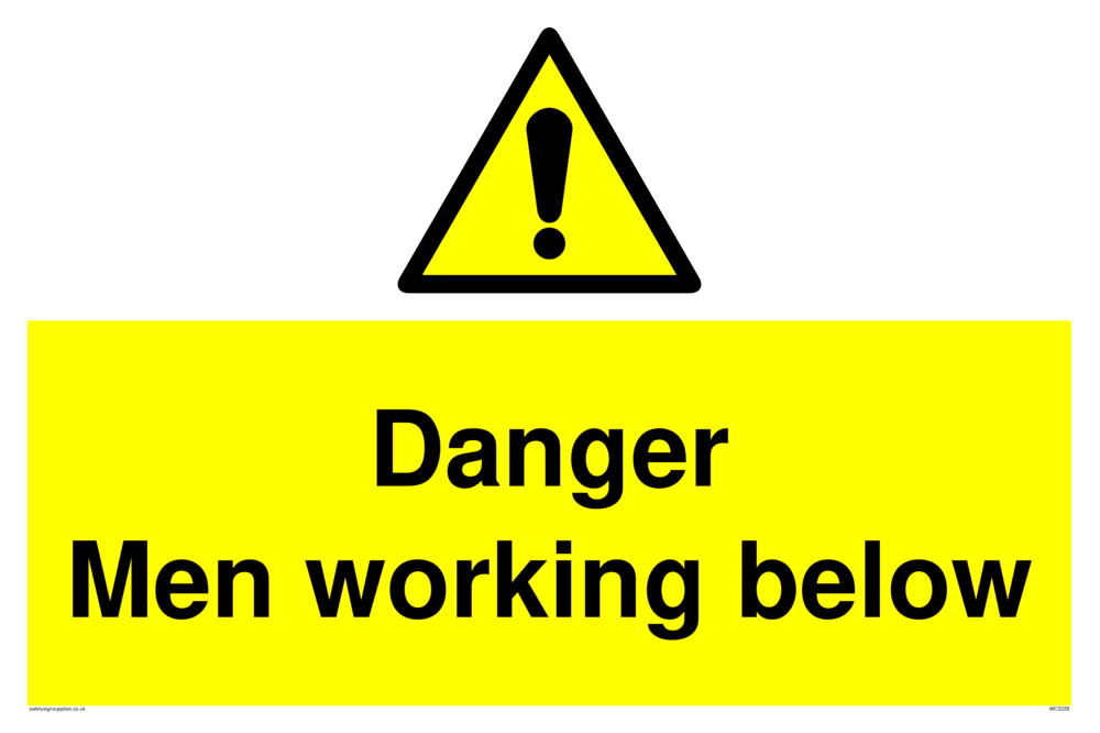 This sign contains a warning Exclamation Symbol - black exclamation mark on yellow triangle background. Suitable for hanging with a premium hanging kit.