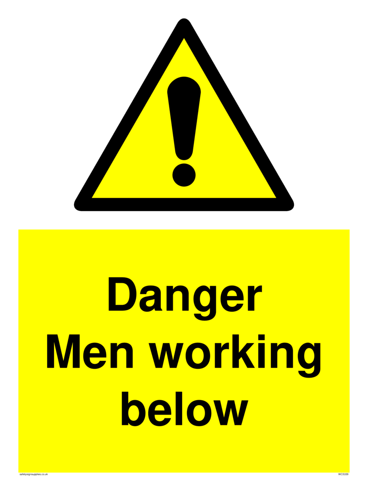 Situational risk signs warn of a risk or danger from the situation, environment, area or place. Construction Signs are used on building and construction sites to show safety policy requirements or hazards. This sign is large.