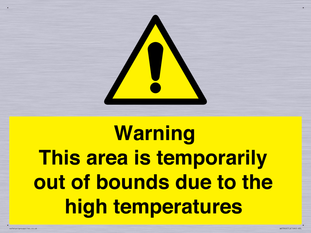 Sign Text: Warning This area is temporarily out of bounds due to the high temperatures