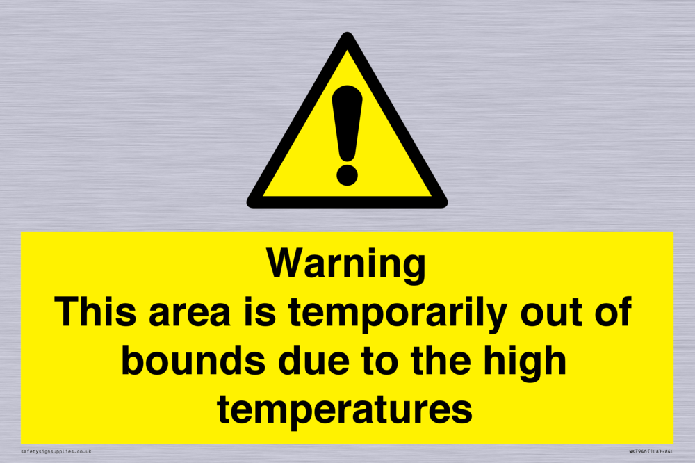 Sign Text: Warning This area is temporarily out of bounds due to the high temperatures