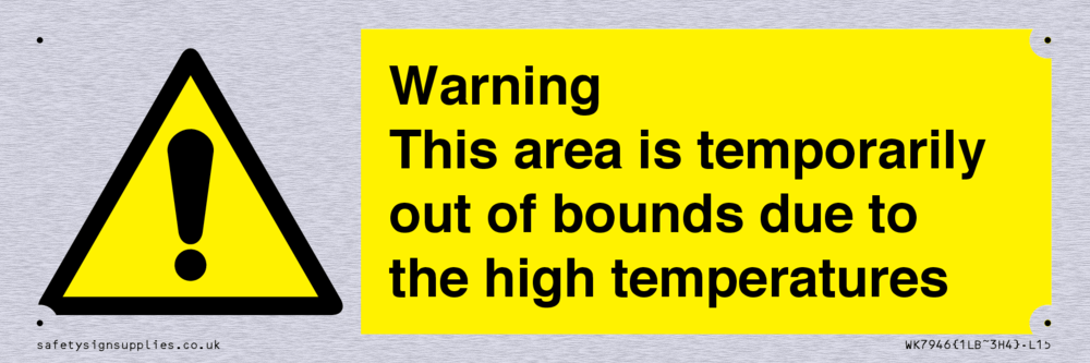 Sign Text: Warning This area is temporarily out of bounds due to the high temperatures
