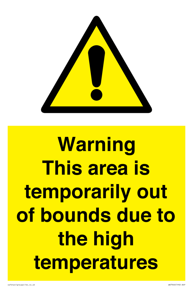 Sign Text: Warning This area is temporarily out of bounds due to the high temperatures