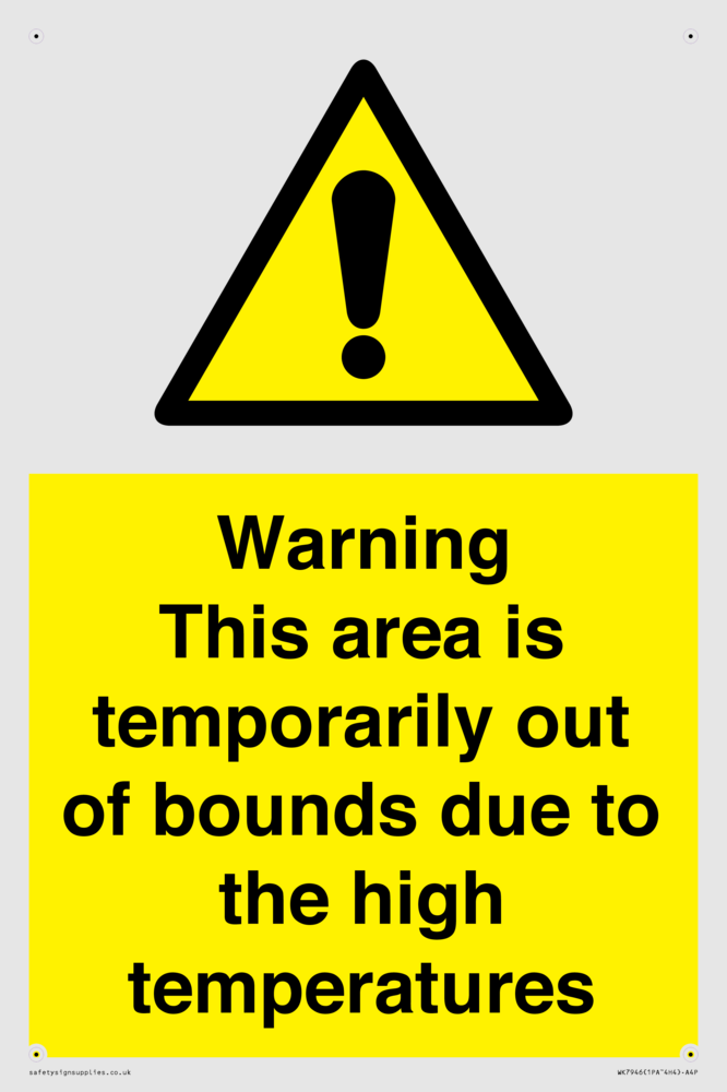 Sign Text: Warning This area is temporarily out of bounds due to the high temperatures