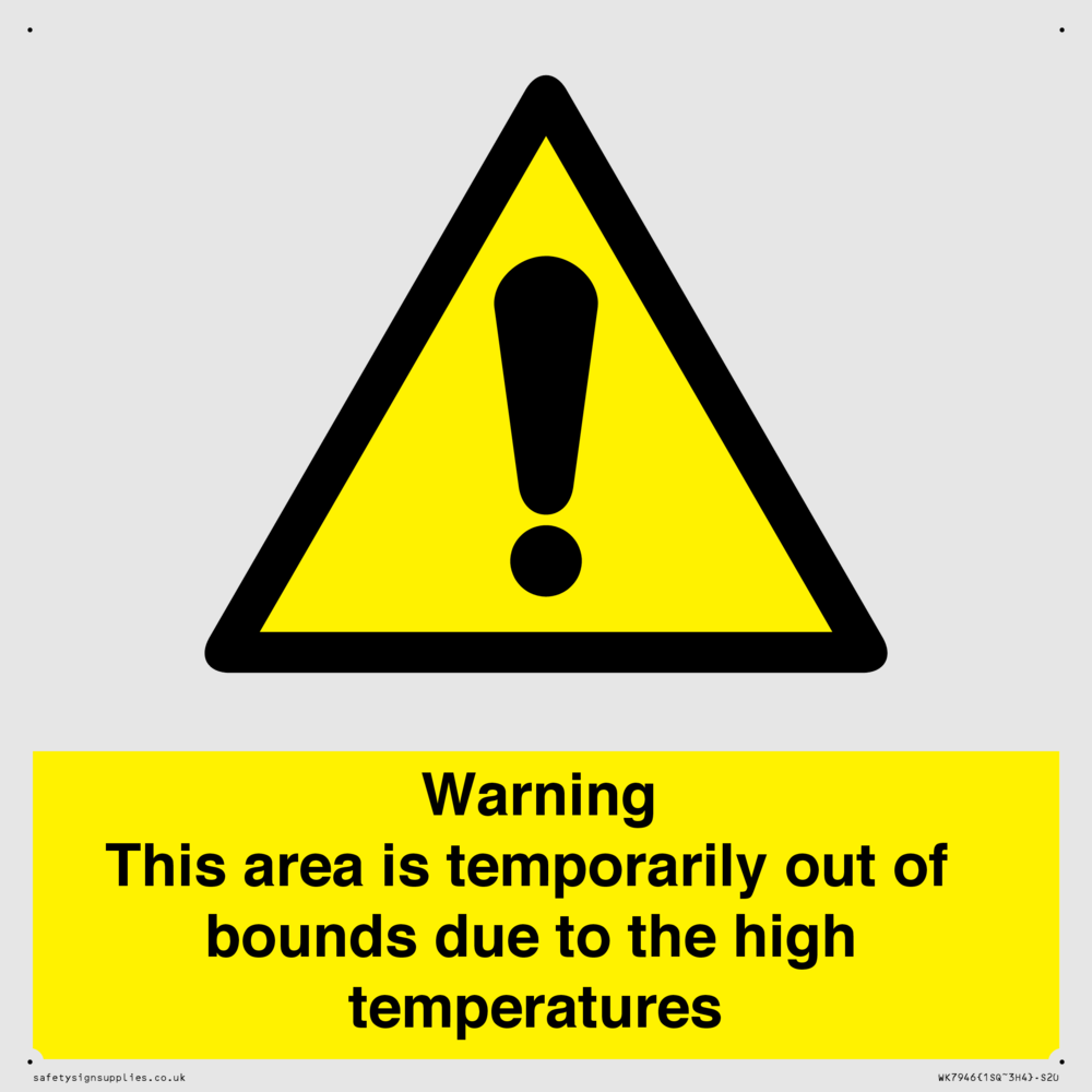 Sign Text: Warning This area is temporarily out of bounds due to the high temperatures