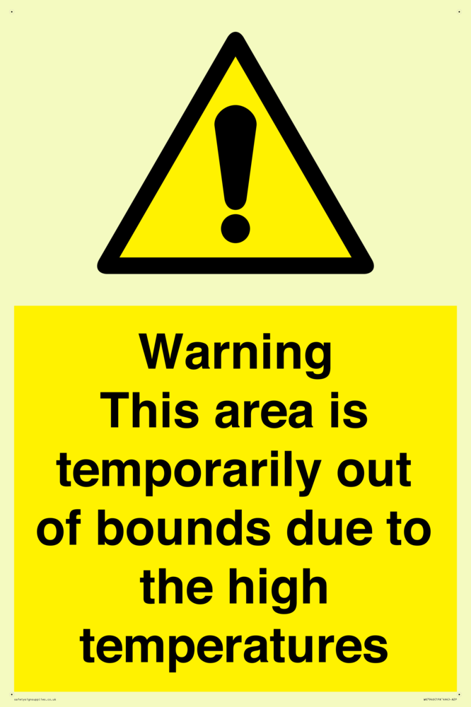 Sign Text: Warning This area is temporarily out of bounds due to the high temperatures