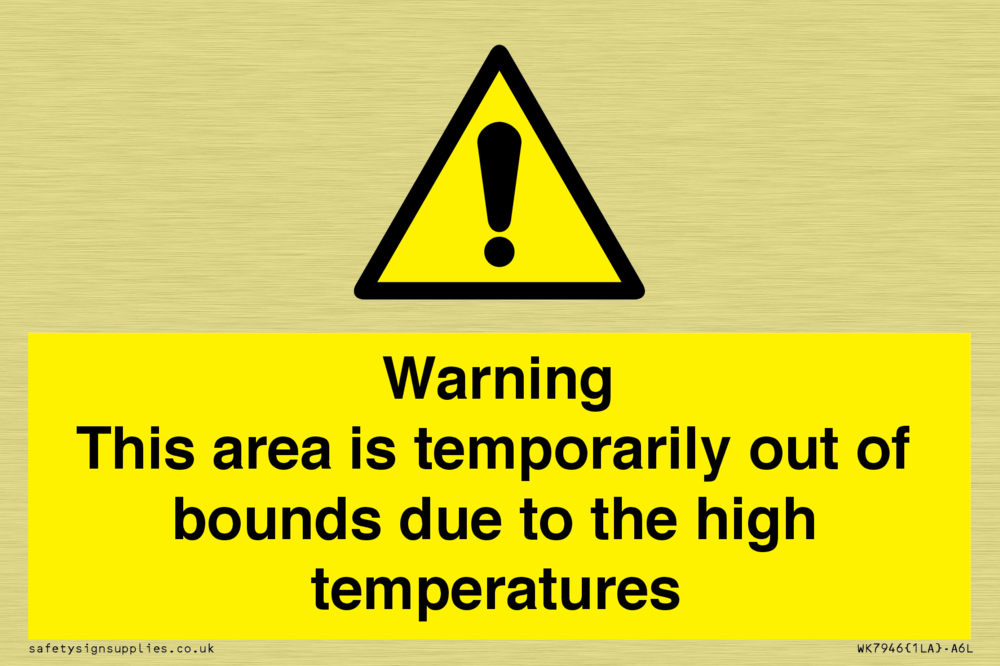 Sign Text: Warning This area is temporarily out of bounds due to the high temperatures