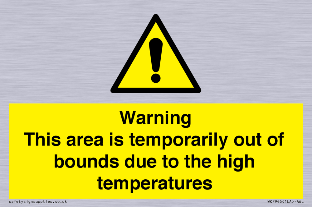 Sign Text: Warning This area is temporarily out of bounds due to the high temperatures