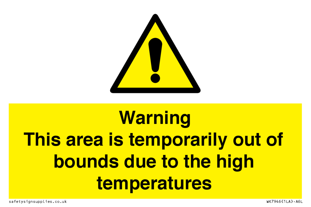 Sign Text: Warning This area is temporarily out of bounds due to the high temperatures