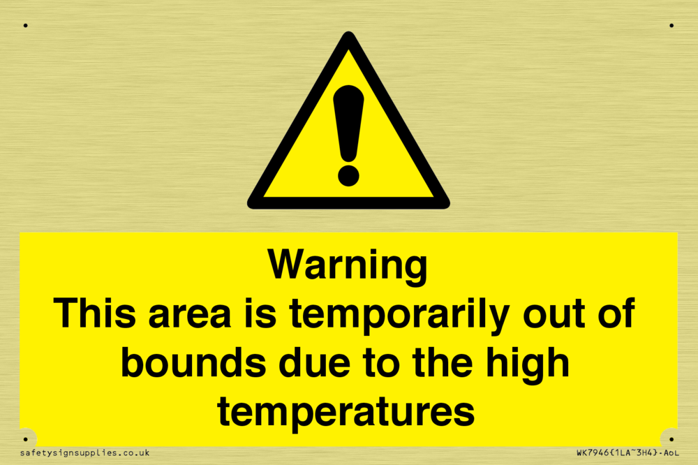 Sign Text: Warning This area is temporarily out of bounds due to the high temperatures