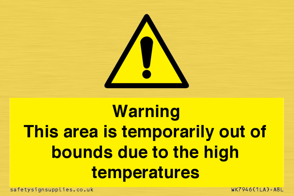 Sign Text: Warning This area is temporarily out of bounds due to the high temperatures