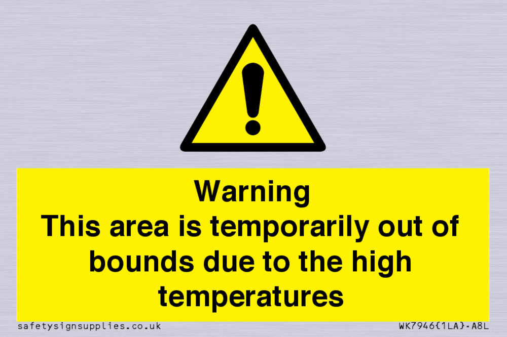 Sign Text: Warning This area is temporarily out of bounds due to the high temperatures