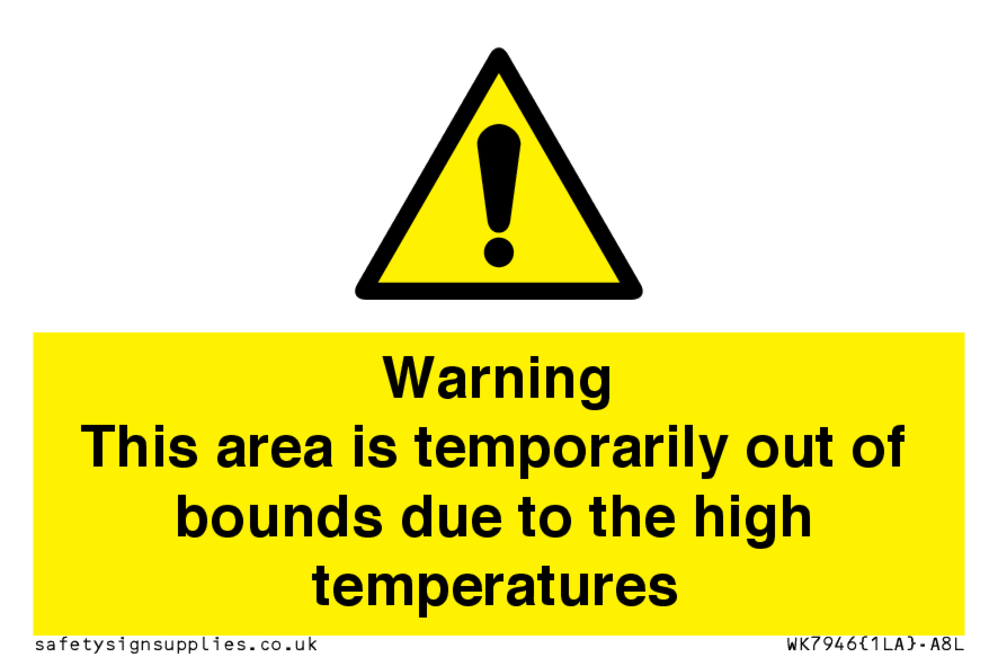 Sign Text: Warning This area is temporarily out of bounds due to the high temperatures