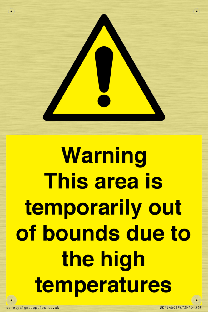 Sign Text: Warning This area is temporarily out of bounds due to the high temperatures