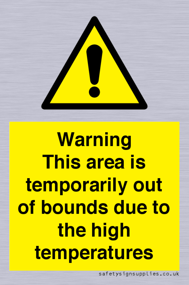 Sign Text: Warning This area is temporarily out of bounds due to the high temperatures