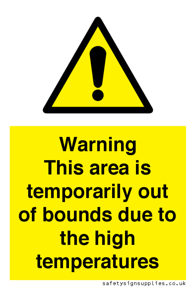 Sign Text: Warning This area is temporarily out of bounds due to the high temperatures