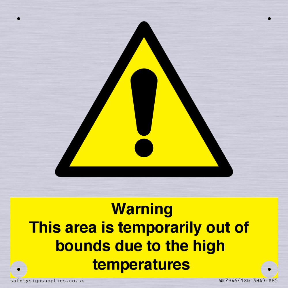 Sign Text: Warning This area is temporarily out of bounds due to the high temperatures