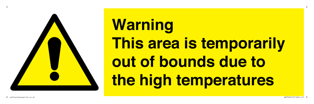Sign Text: Warning This area is temporarily out of bounds due to the high temperatures