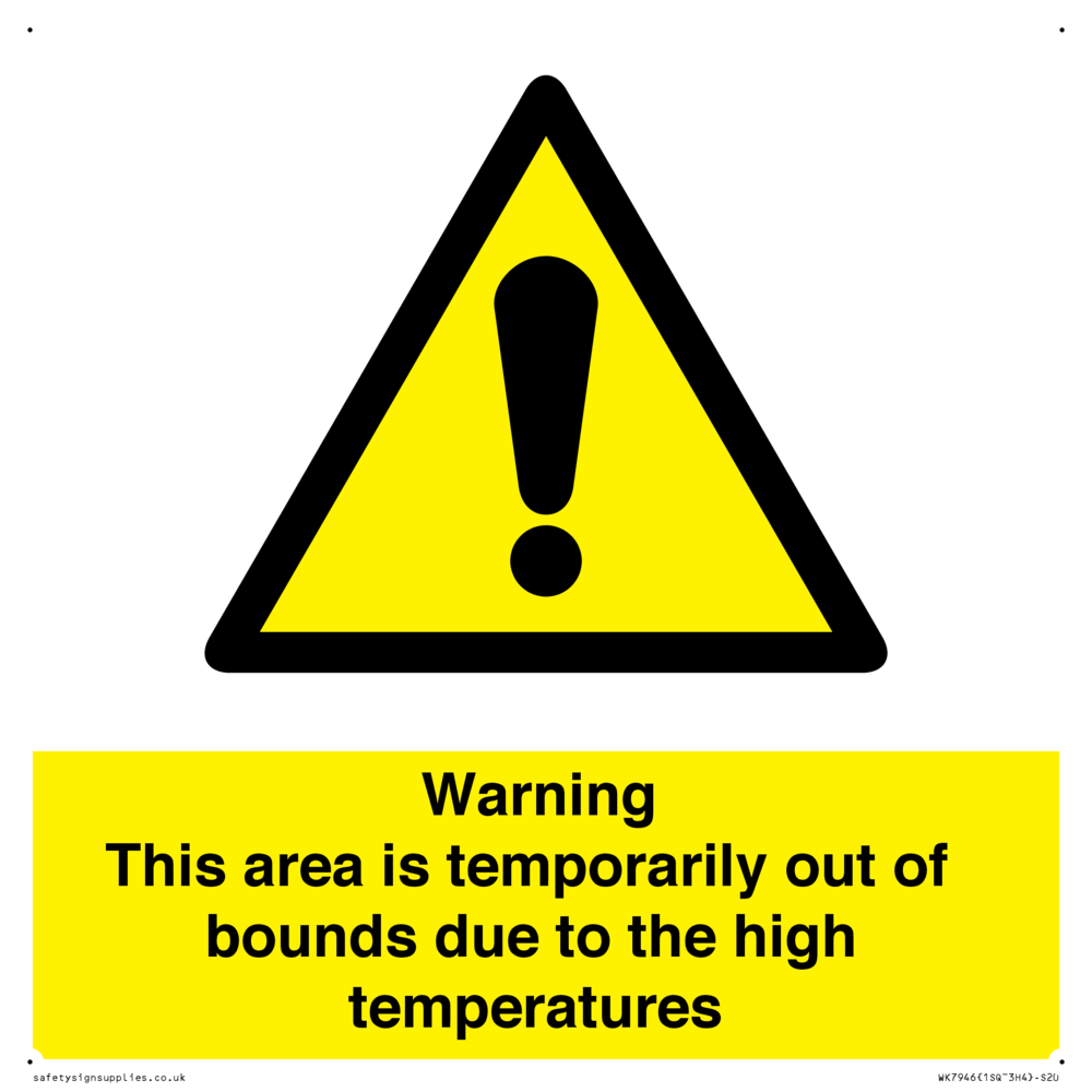 Sign Text: Warning This area is temporarily out of bounds due to the high temperatures