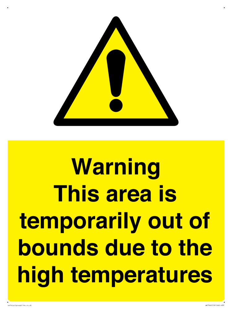 Sign Text: Warning This area is temporarily out of bounds due to the high temperatures