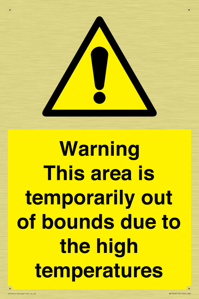 Sign Text: Warning This area is temporarily out of bounds due to the high temperatures