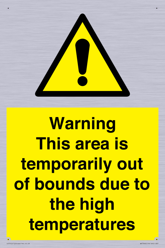Sign Text: Warning This area is temporarily out of bounds due to the high temperatures