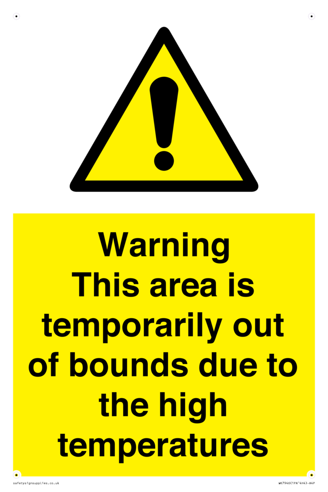 Sign Text: Warning This area is temporarily out of bounds due to the high temperatures