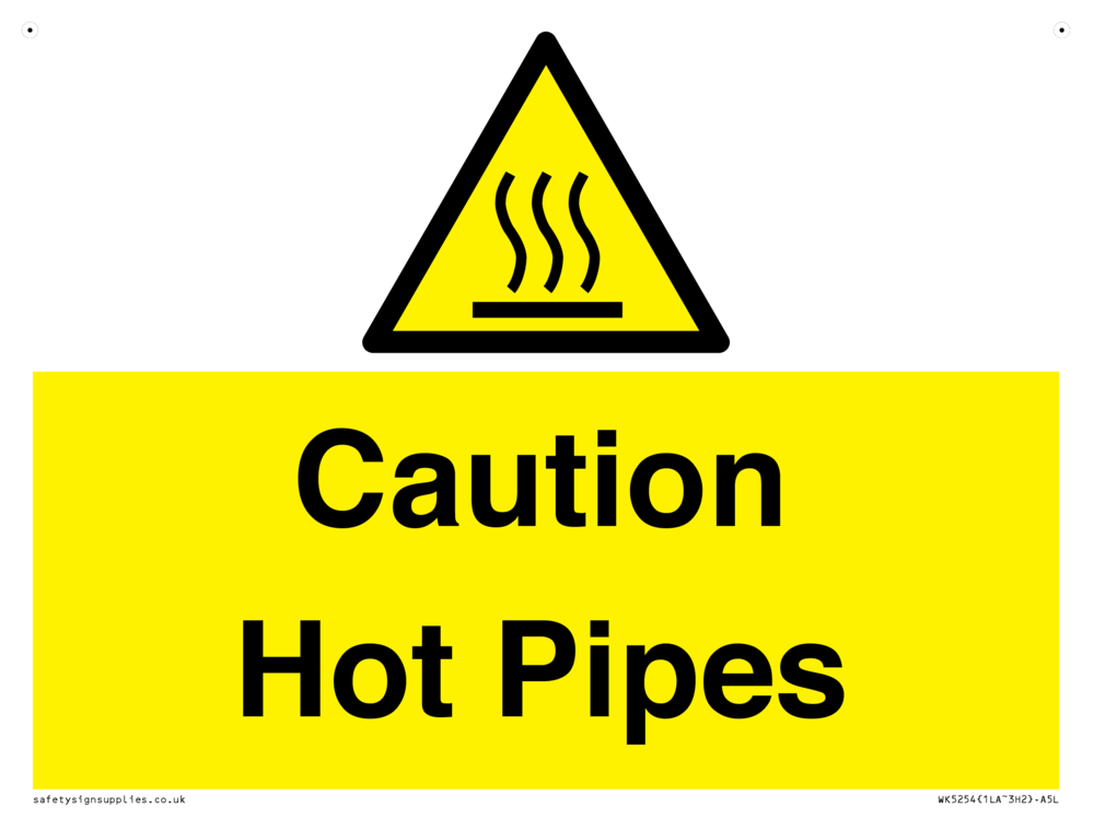 Sign Text: Caution Hot Pipes