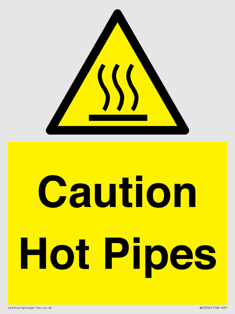 Sign Text: Caution Hot Pipes