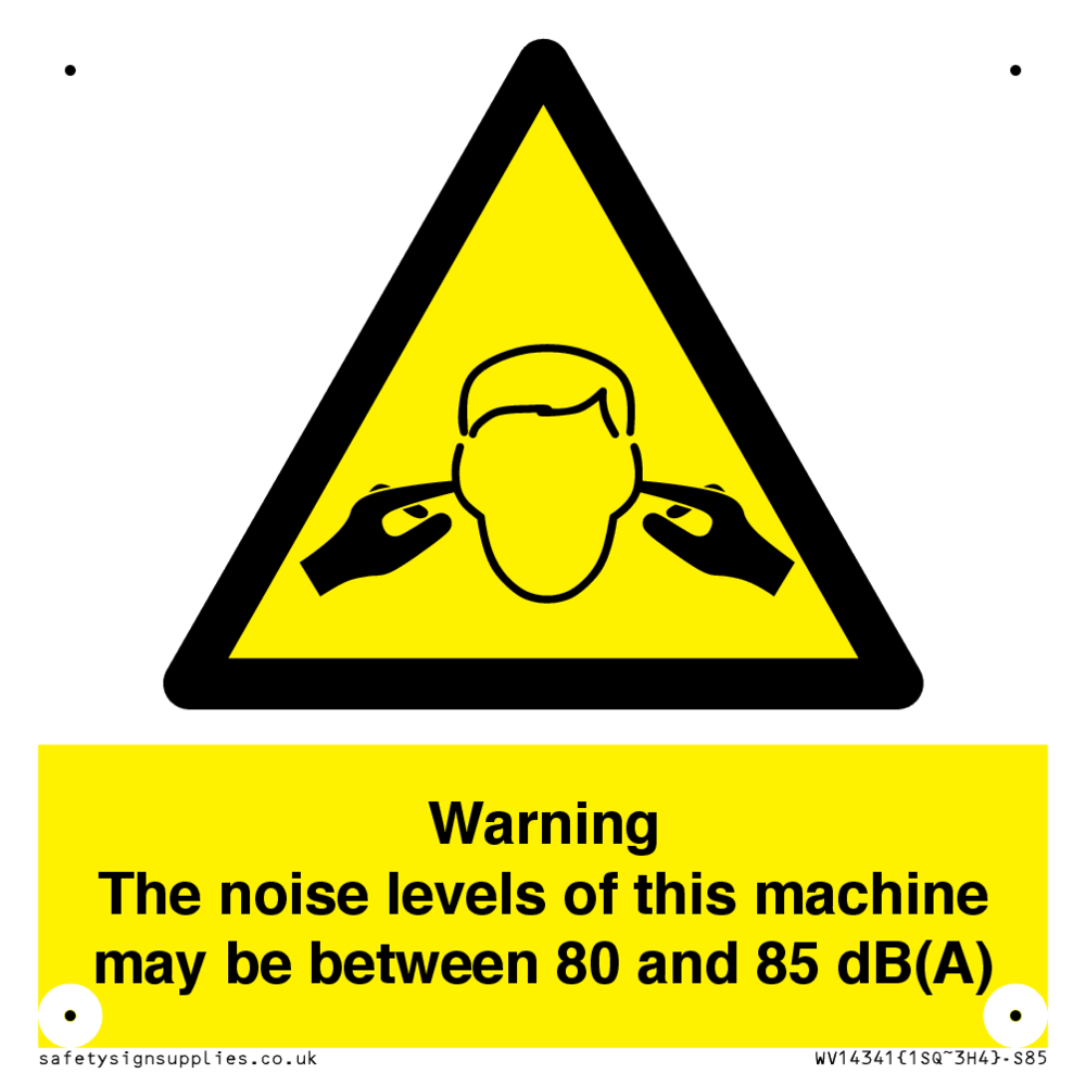 Sign Text: Warning The noise levels of this machine may be between 80 and 85 dB(A)