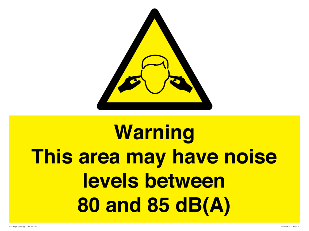 Sign Text: Warning This area may have noise levels between 80 and 85 dB(A)