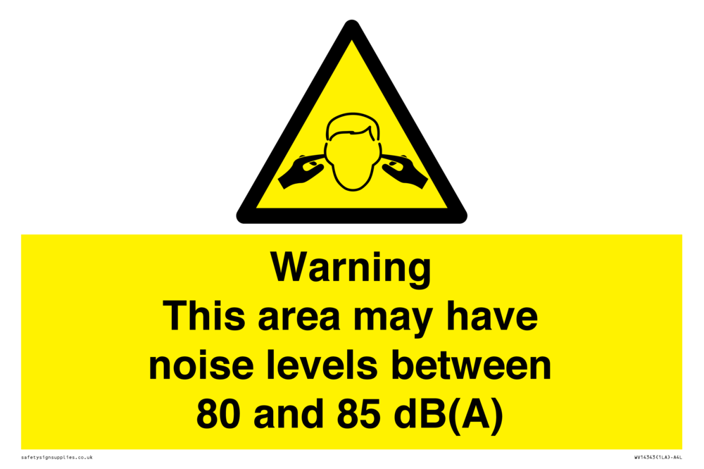 Sign Text: Warning This area may have noise levels between 80 and 85 dB(A)