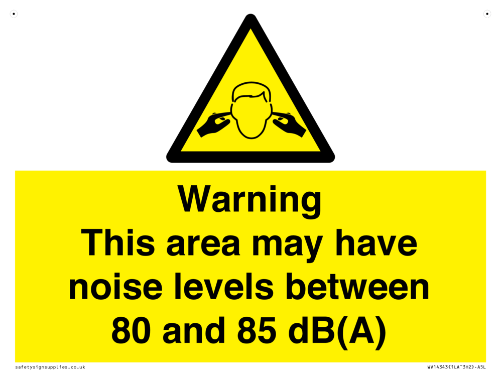 Sign Text: Warning This area may have noise levels between 80 and 85 dB(A)
