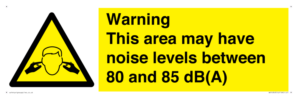 Sign Text: Warning This area may have noise levels between 80 and 85 dB(A)
