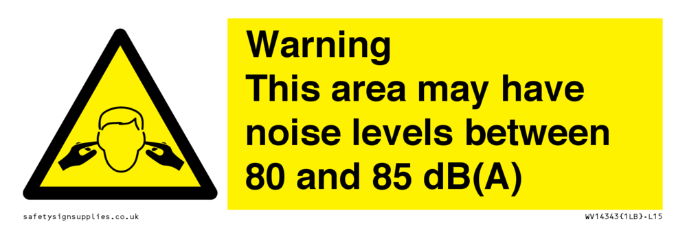 Sign Text: Warning This area may have noise levels between 80 and 85 dB(A)