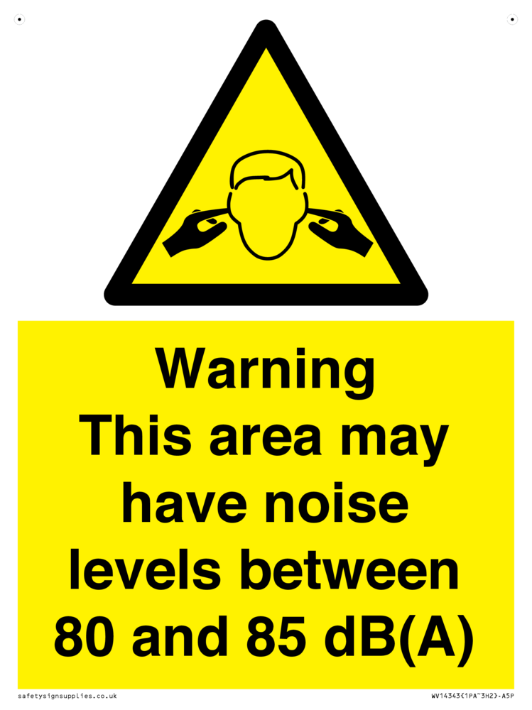Sign Text: Warning This area may have noise levels between 80 and 85 dB(A)